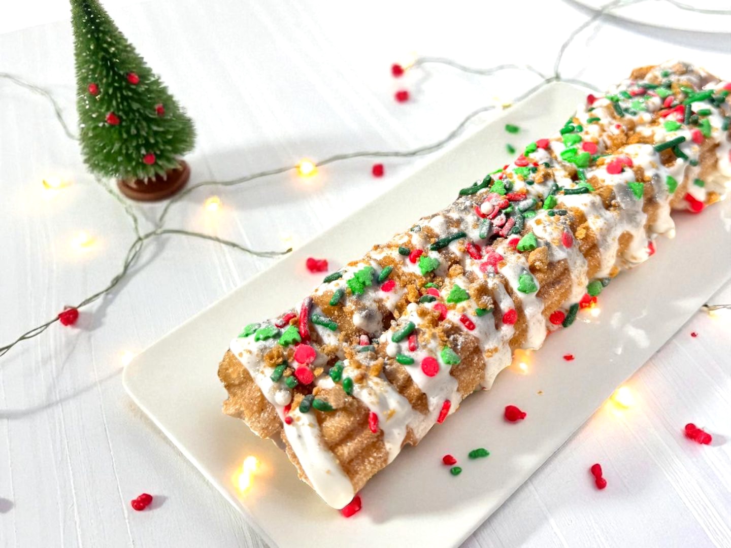 - Gingerbread Churro: A churro rolled in gingerbread sugar, drizzled with buttercream frosting topped with crushed gingerbread cookie crumbs and a spritz of edible glitter (New)