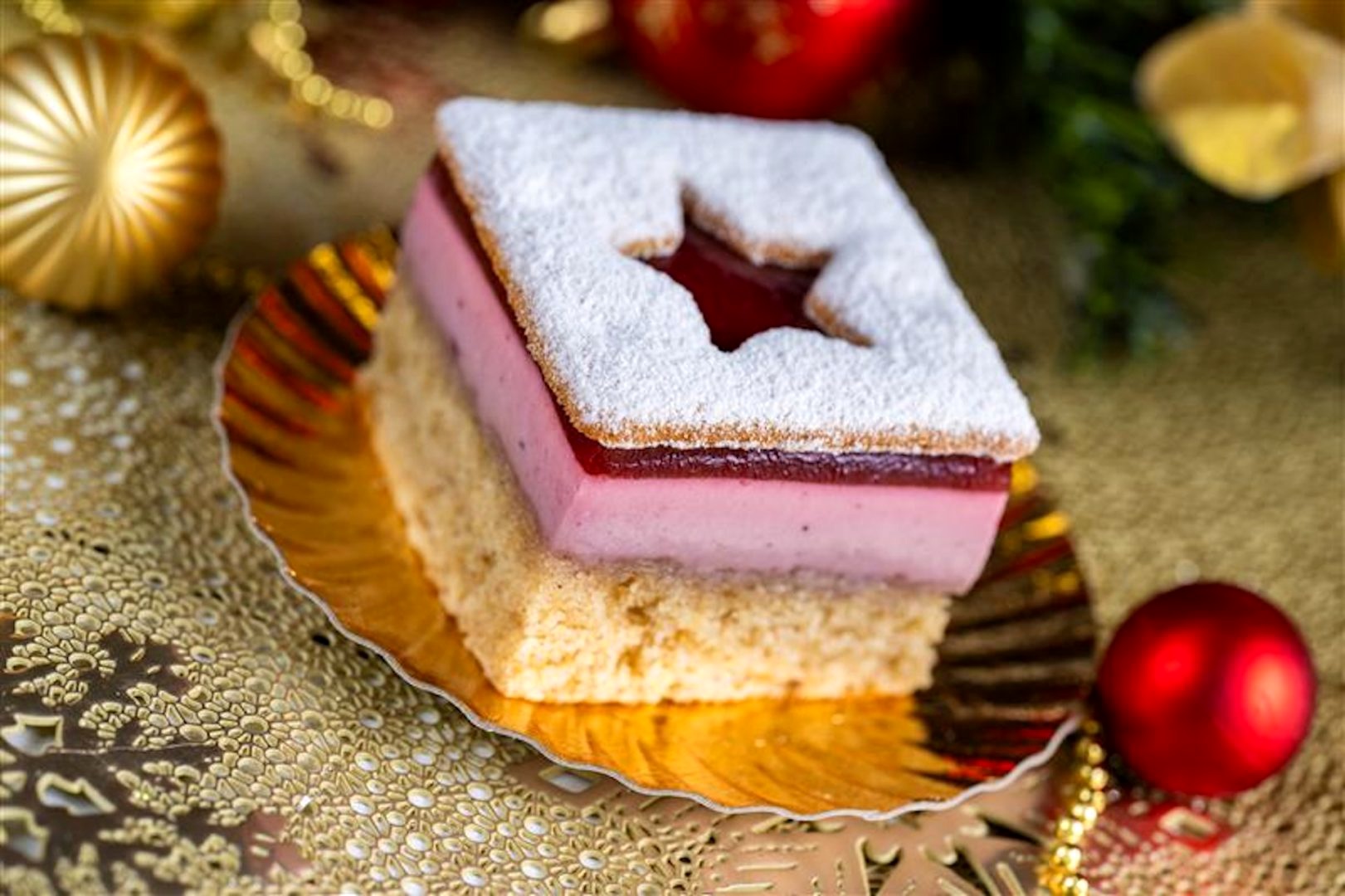 - Linzer Cookie Mousse Torte: Layers of hazelnut cake, raspberry-blackcurrant mousse, raspberry jam, and sweet snow-dusted linzer cookie