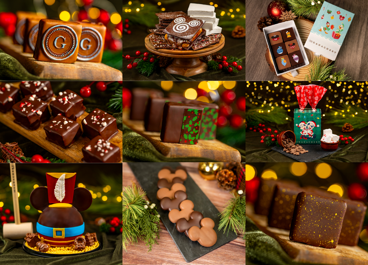 - Disney Holiday Ganache Box: Assorted ganache squares in holiday flavors