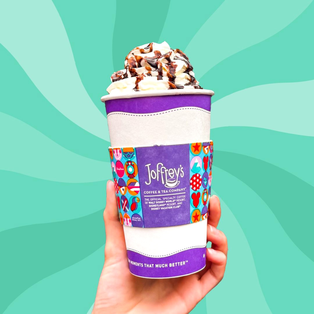 - Frozen Hot Cocoa: Frozen Hot Cocoa by Joffrey’s with toasted marshmallow, whipped cream, holiday sprinkles, chocolate dinosaur, and a chocolate rim (New)