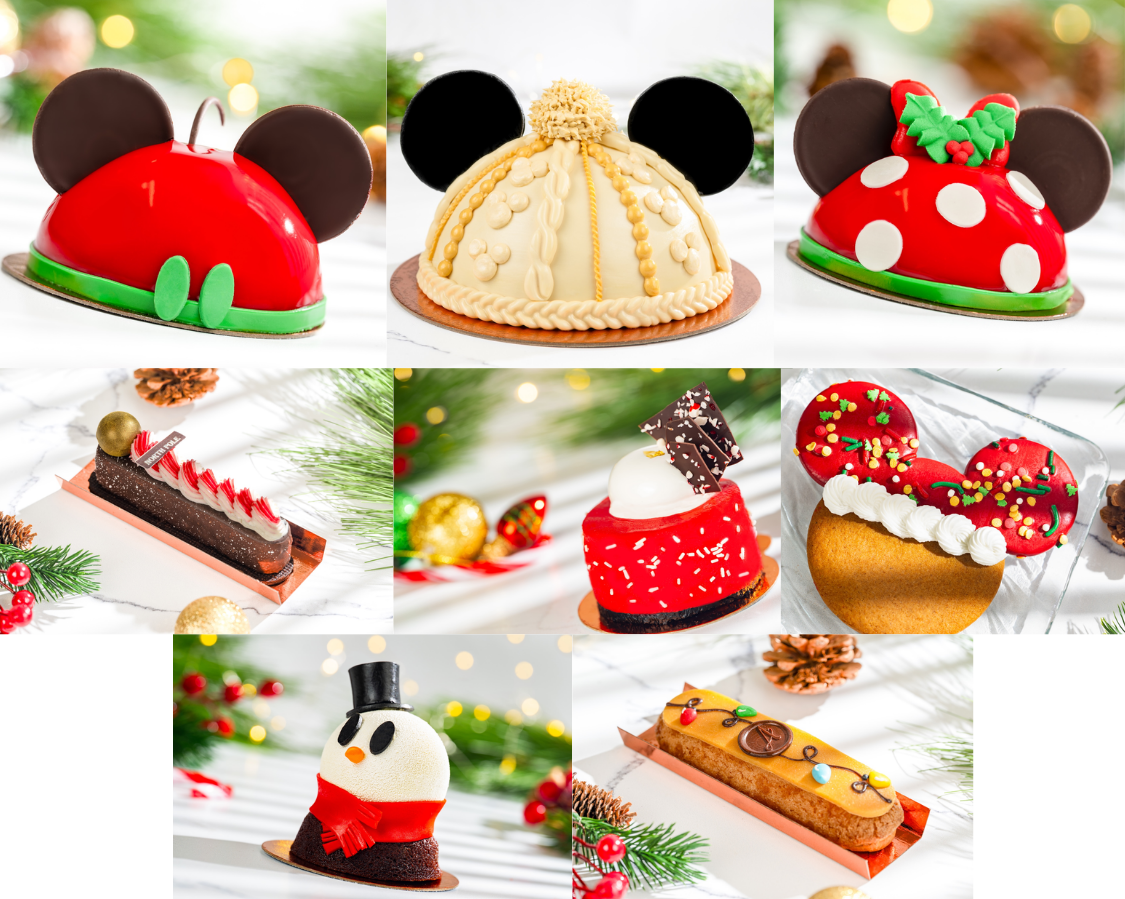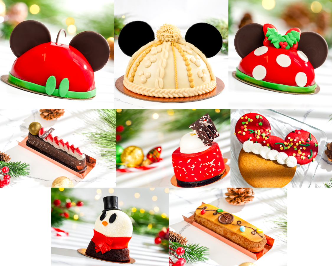 - Mickey Sweater Hat Dome Cake: Gingerbread chiffon, marshmallow mousse, milk chocolate mousse, and salted caramel crispy pearls (New)
