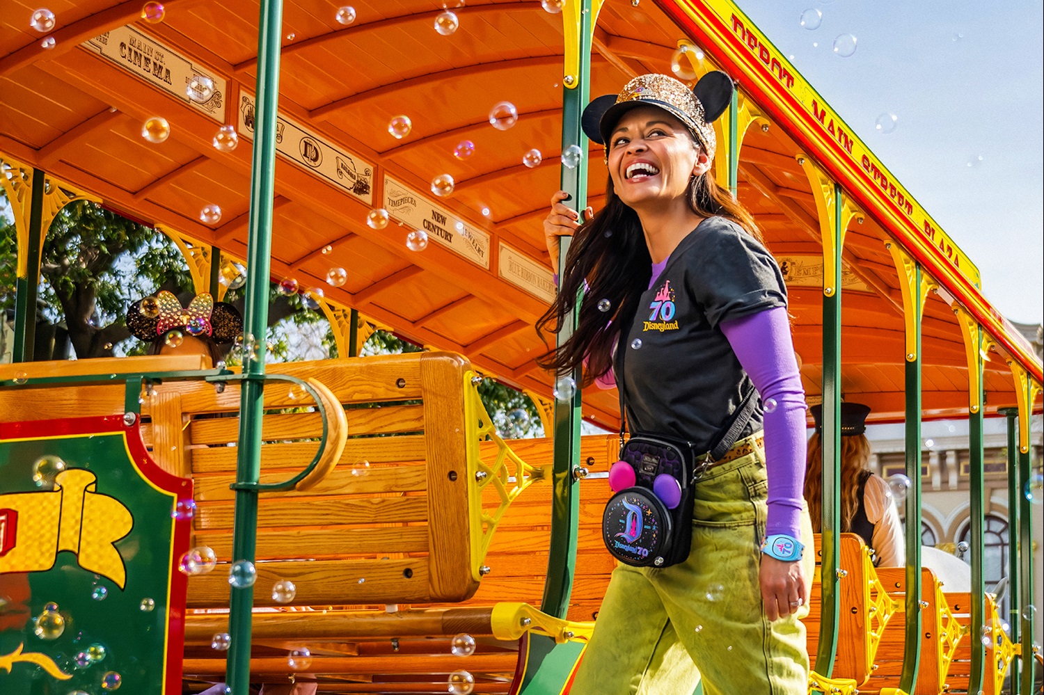 The Celebration Collection takes classic Disney Parks styles and adds bold colors, new character art, and designs inspired by Disneyland Resort attractions. The collection is available for kids and adults and includes apparel, accessories, a new bubble wand with interchangeable character hats, and more. Each character head will also create unique light and sounds inspired by the characters. It also includes a unique 70th anniversary MagicBands+.