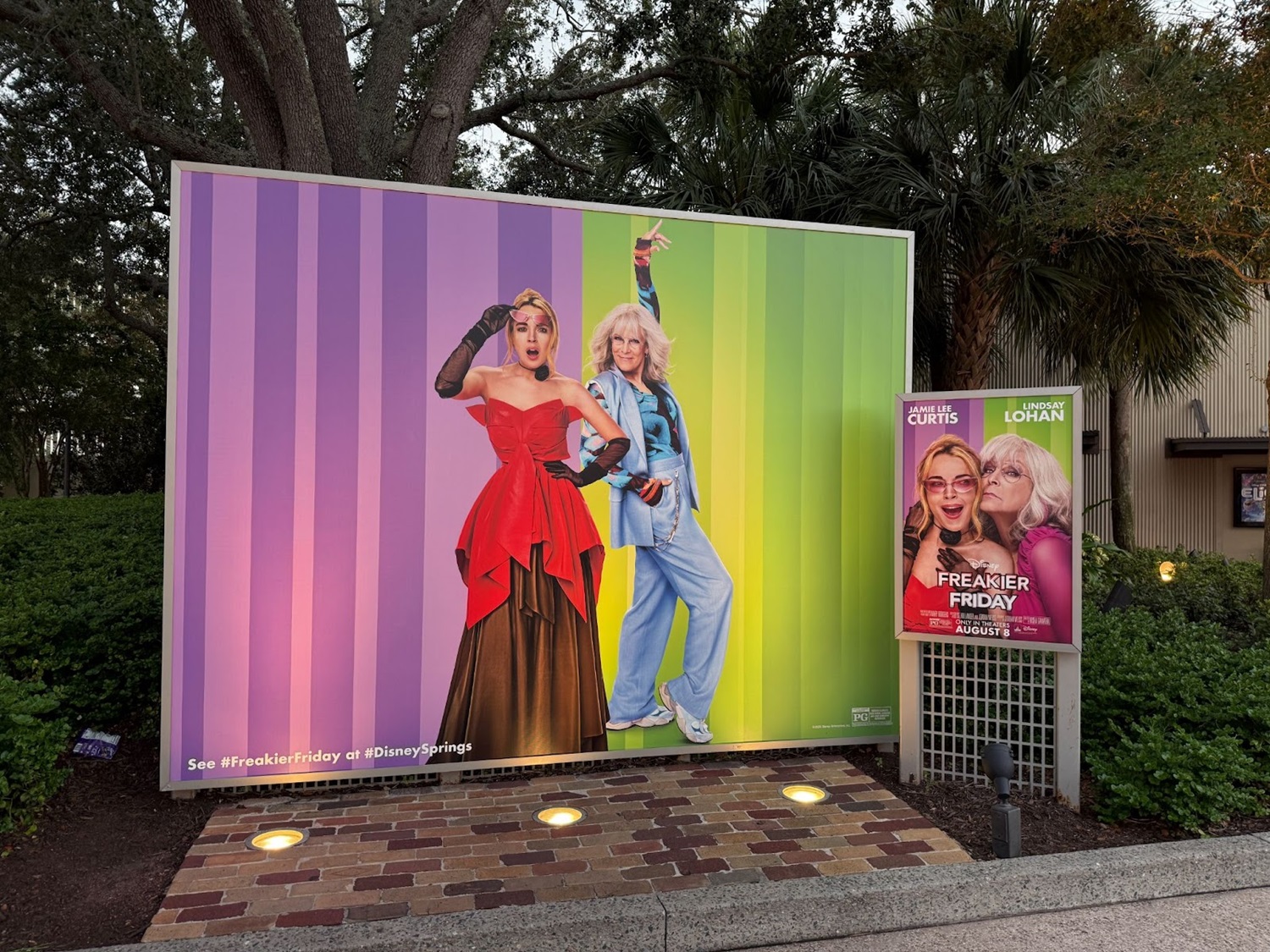 - Located at Disney Springs, the theatre is covered in new banners and billboards showing off the return of Jamie Lee Curtis and Lindsay Lohan as the Ultimate mother-daughter duo.