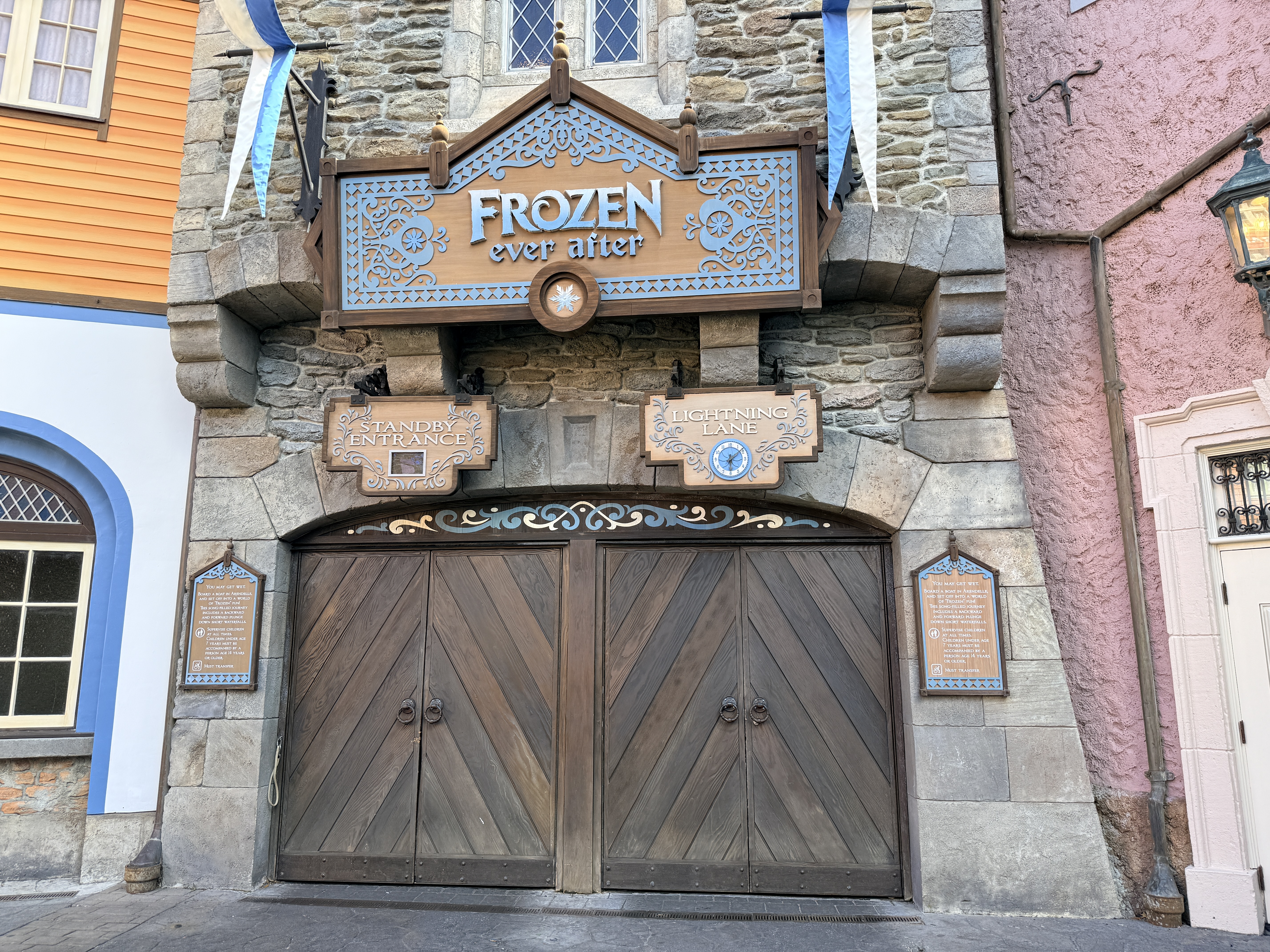 The new Audio-Animatronic figures akin to those in the Hong Kong Disneyland version of Frozen Ever After will be coming to EPCOT in February 2026. To prepare for the change, Frozen Ever After is now closed as the new magic is installed. No walls are up, but the doors to the attraction are closed.