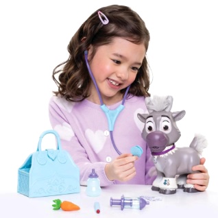 This fully interactive Young Sven Care Kit is inspired by the animal care theme in Animals of Arendelle: Lost and Found - a newly imagined story from the world of Disney’s Frozen. Inside the vet bag is everything kids need to keep Young Sven healthy and happy. Little ones can pet him, feed him a carrot or bottle, listen to his heartbeat, check his temperature, and see Sven respond and react.
