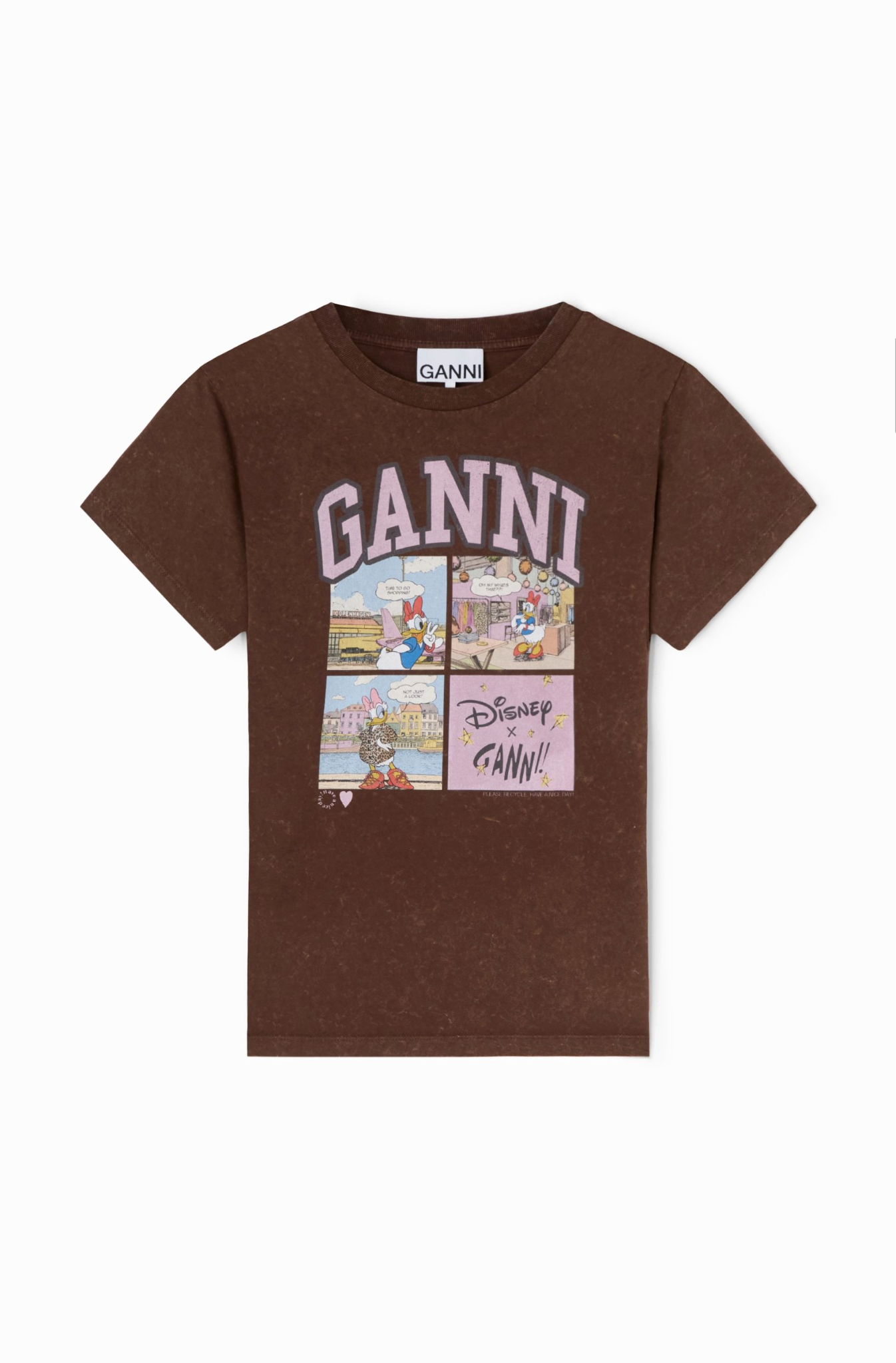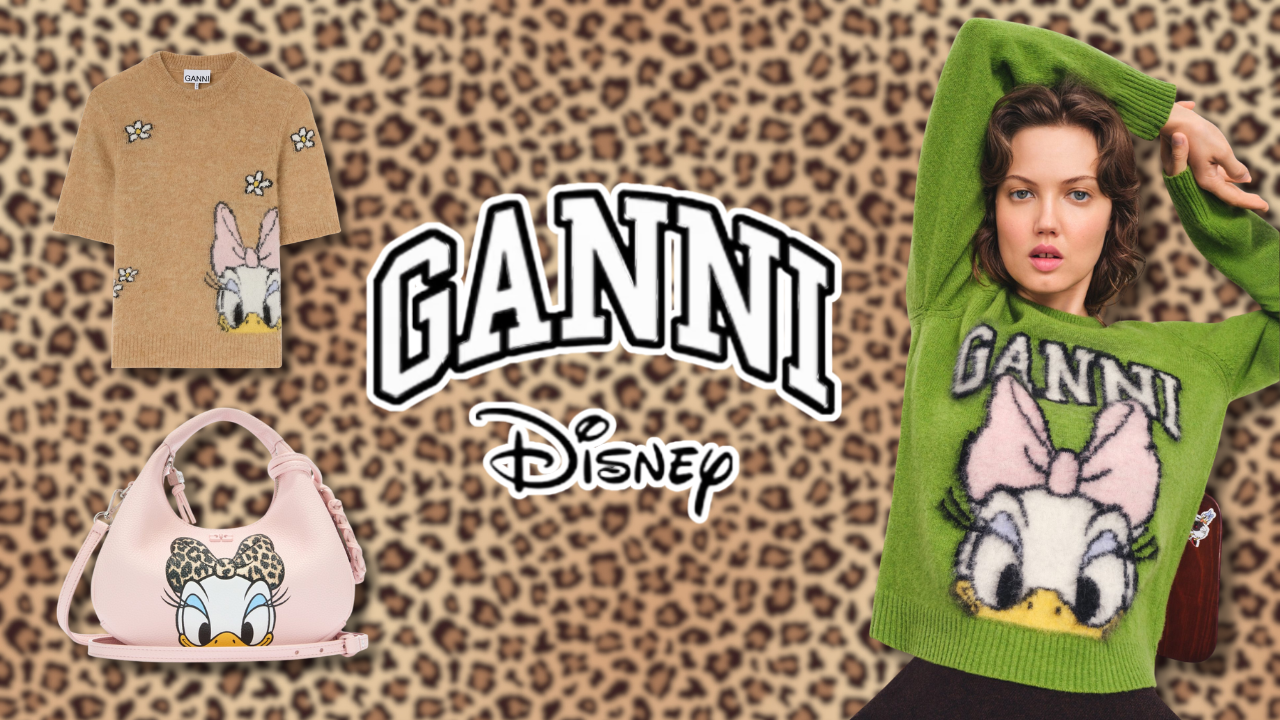 - This latest GANNI x Disney features playful comic-book-inspired illustrations and a whimsical narrative; the collection reimagines Daisy Duck as a modern muse on a journey to define her signature style. From statement sweaters and graphic tees to denim essentials and standout accessories, each piece channels Daisy’s adventurous energy in a contemporary, wearable way.