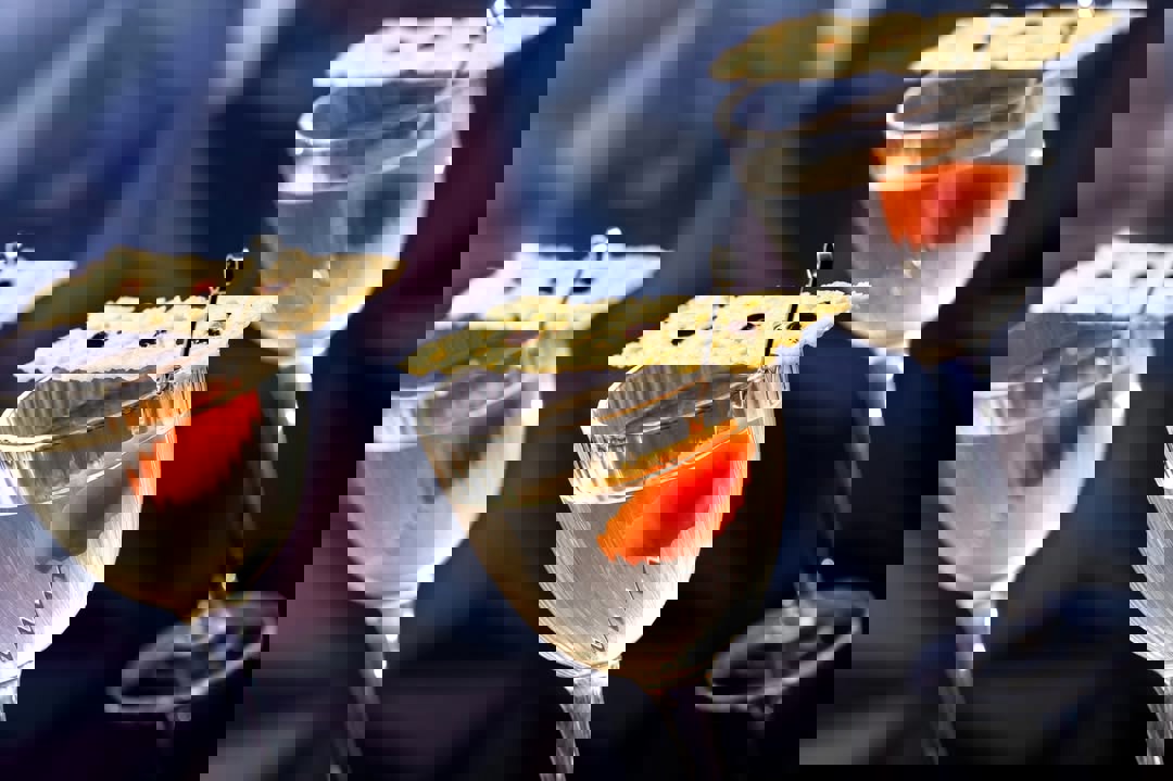 - Tuscan Olive Oil Martini – Savory, Herbaceous, Memorable; VUSA African Vodka, Dolin Dry Vermouth de Chambéry, Olive Oil, Tomato, Parmesan Crisp