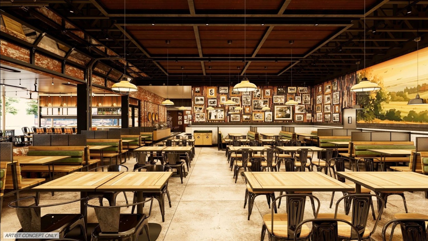 - The interiors will blend comfort and sophistication, with Arthur & Sons offering premium beef, fresh seafood, and a diverse selection of bourbons and cocktails, all within a setting of crisp lines and rich wood tones.