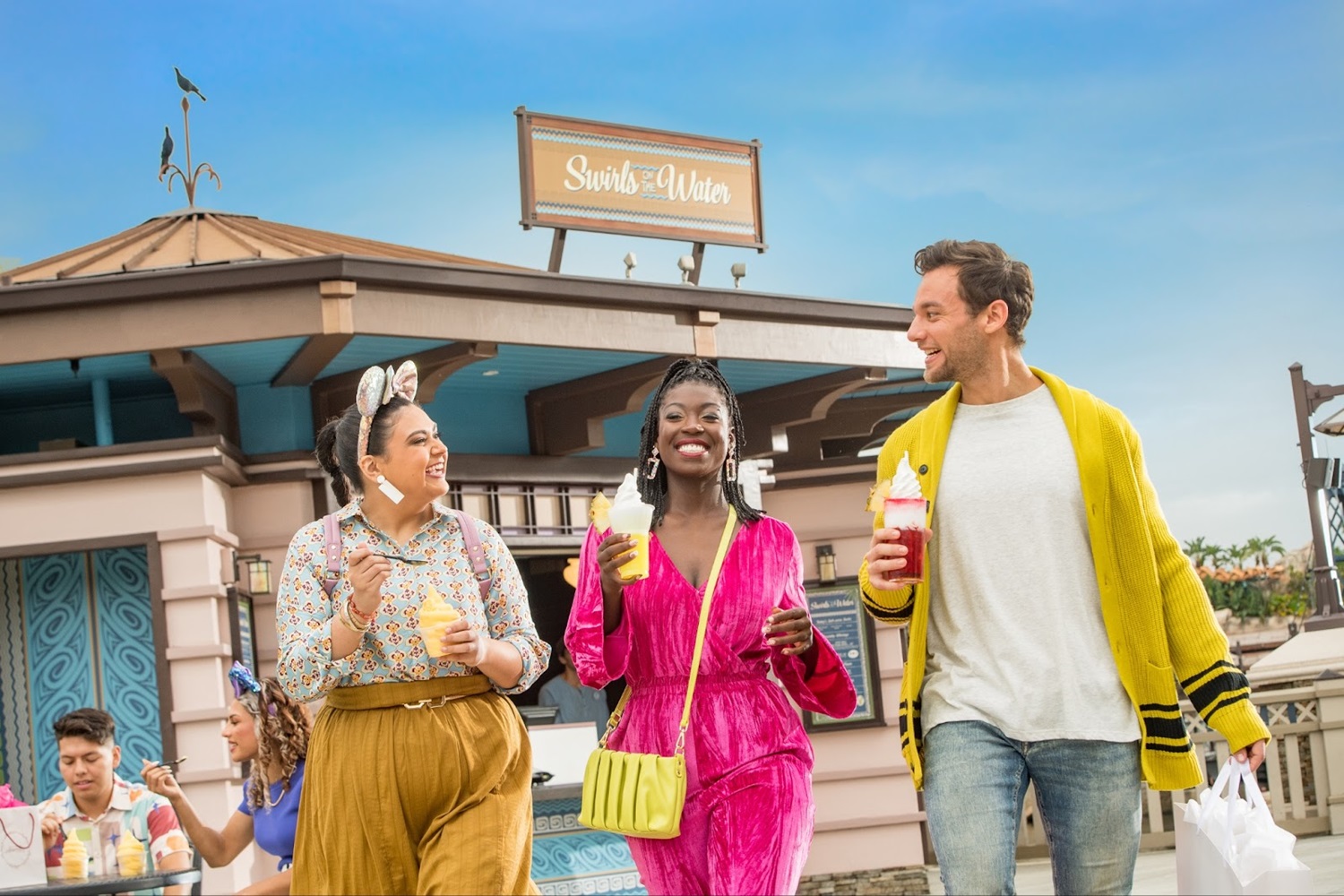 - The photo above, from Disney Springs’ Swirls on the Water, was the one accompanying the press release for the discounted hotel rates. This photo brings up dark memories for me because it was at Swirls on the Water that I made the grave mistake of getting my delicious Dole Whip on a cone for the first and only time.