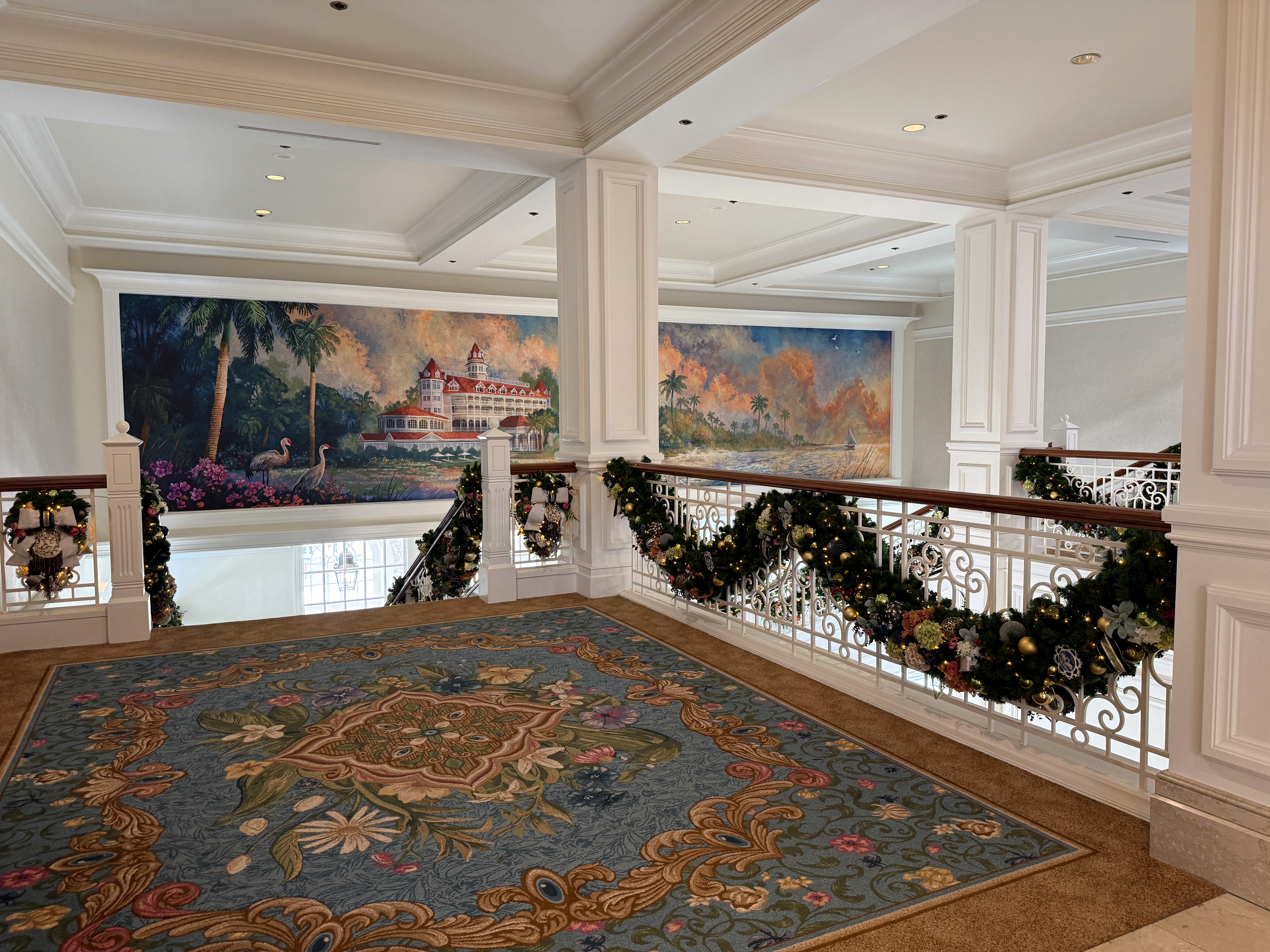 More of the refreshed lobby is also decked out for the holidays, including the grand staircase.