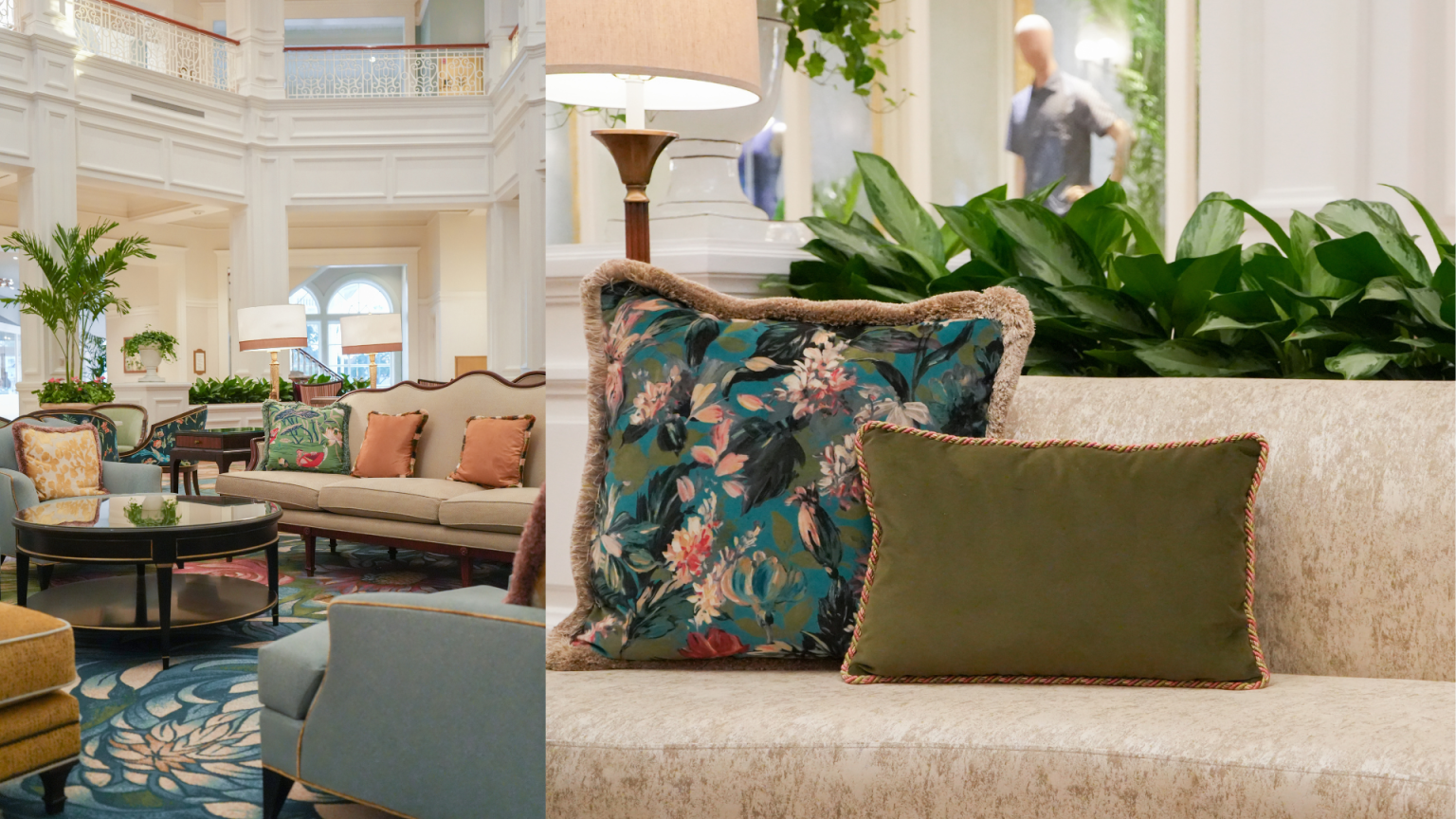 - New carpeting with Victorian-inspired borders and scrollwork featuring hand-drawn florals inspired by turn-of-the-century botanical studies. Also hidden throughout over 200 individual floral blossom patterns throughout the carpet of the lobby, a staple of any Disney hotel, the hidden Mickeys!