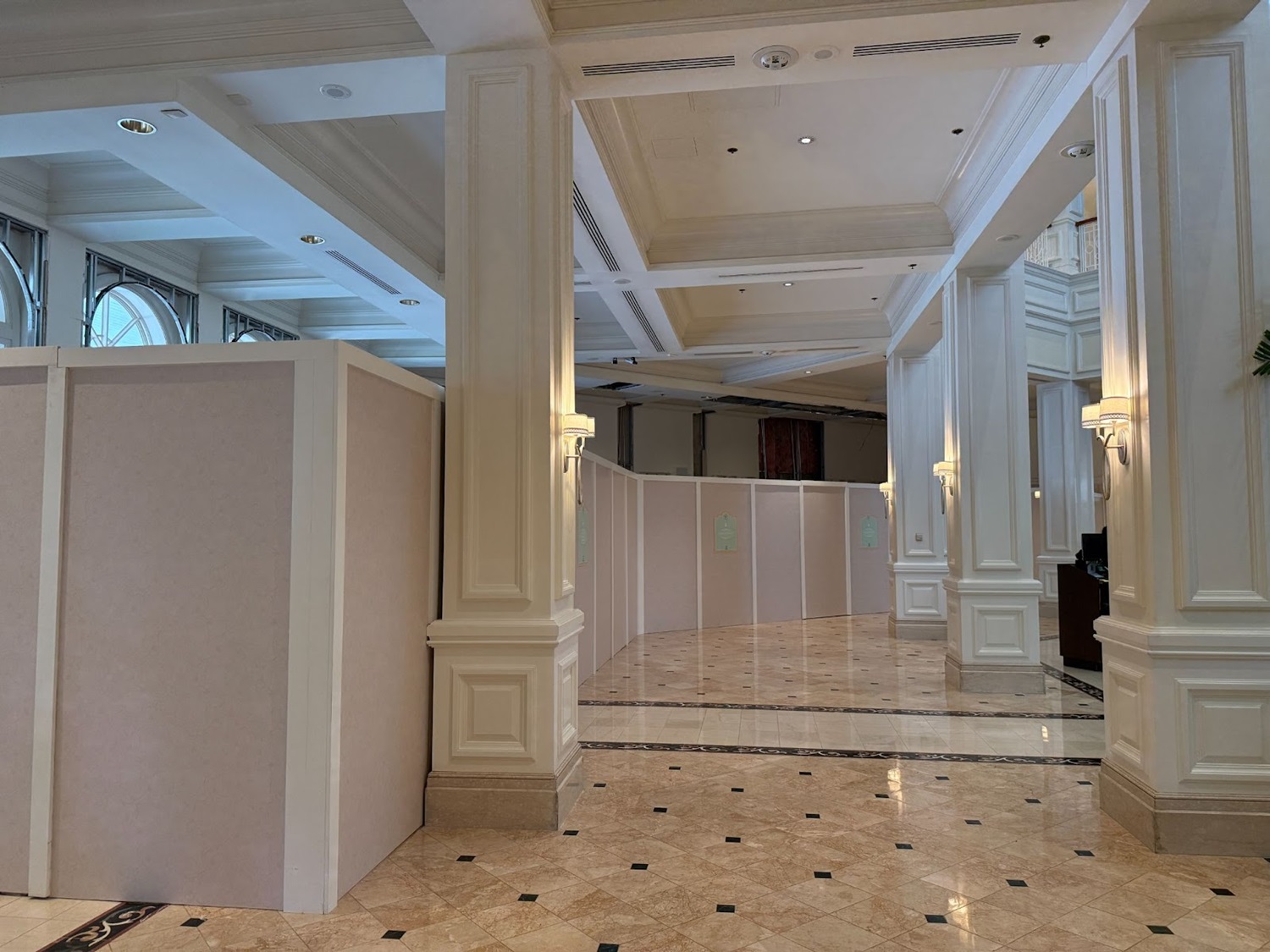 These walls are in aid of a massive lobby renovation for the resort, ultimately adding a brand new Lobby Bar, along with a visual update to the entire area, including the lobby, staircase and front desk. Other areas around the lobby are also walled off at this time, including part of the check-in area and the old bar area at the back of the lobby.