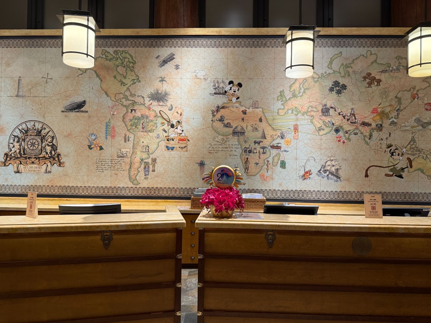 - In the hotel lobby, the check in desks were adorned with celebratory flower arrangements. Giant banners also hang throughout.