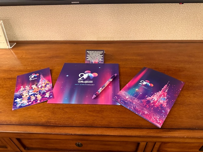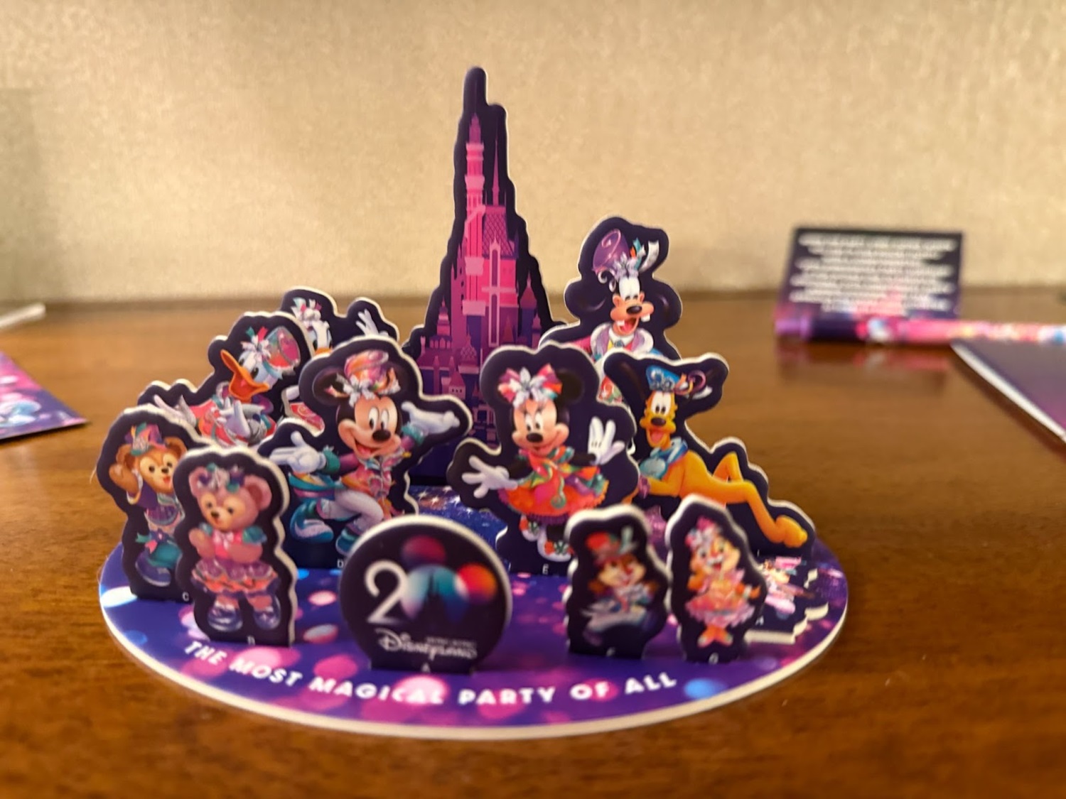 - Inside the room, a special “20th Anniversary Surprise" was waiting, which included a complimentary pen, booklet, and a really festive buildable character display.