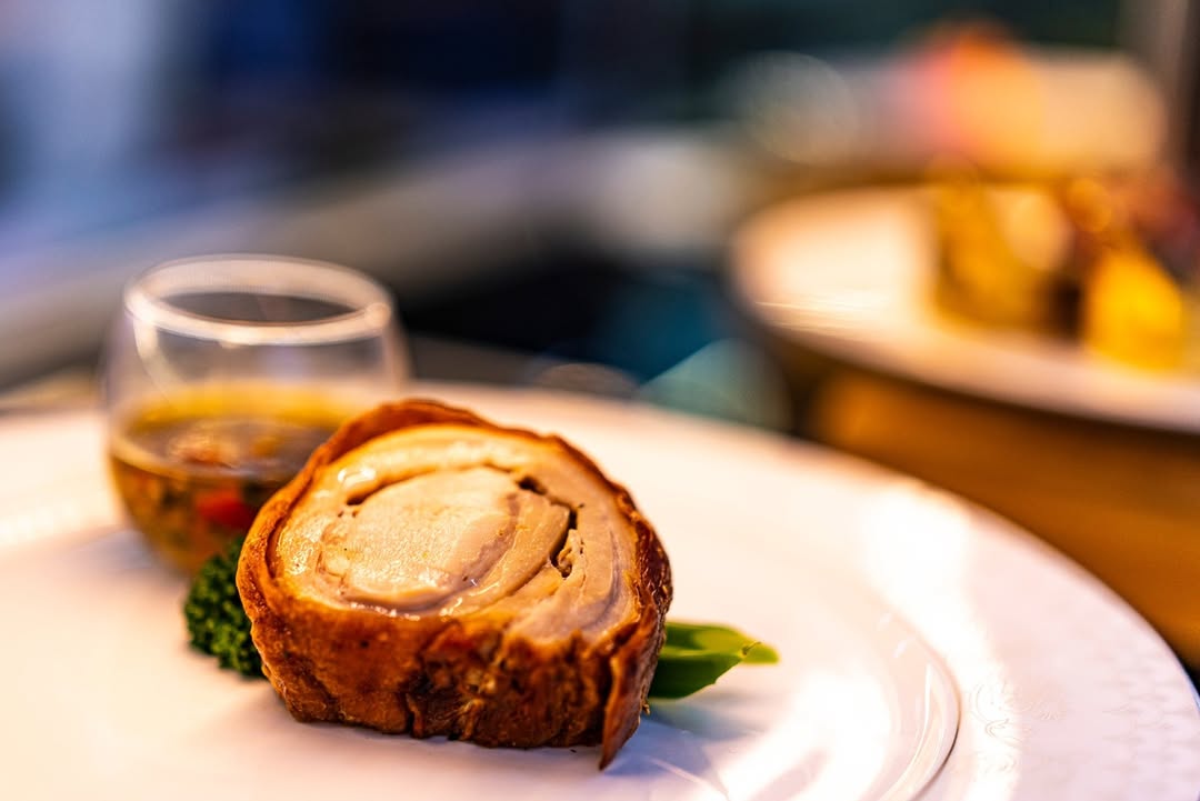 - First is the Festive Platter, which can be seen above. The second item is a Mini Pork Porchetta with Chimichurri Sauce.