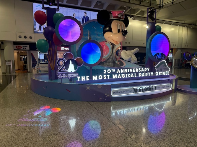 We have arrived in Hong Kong just as Hong Kong Disneyland gets ready to launch “The Most Magical Party of All," celebrating the resort’s 20th anniversary. Those who fly in via the Hong Kong International Airport will be greeted by an impressive display for the celebration.