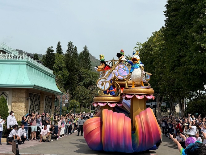 - We also saw the opening float featuring Mickey, Minnie and friends, which features live drumming from Mickey and Hong Kong’s signature bauhinia flower decorations.
