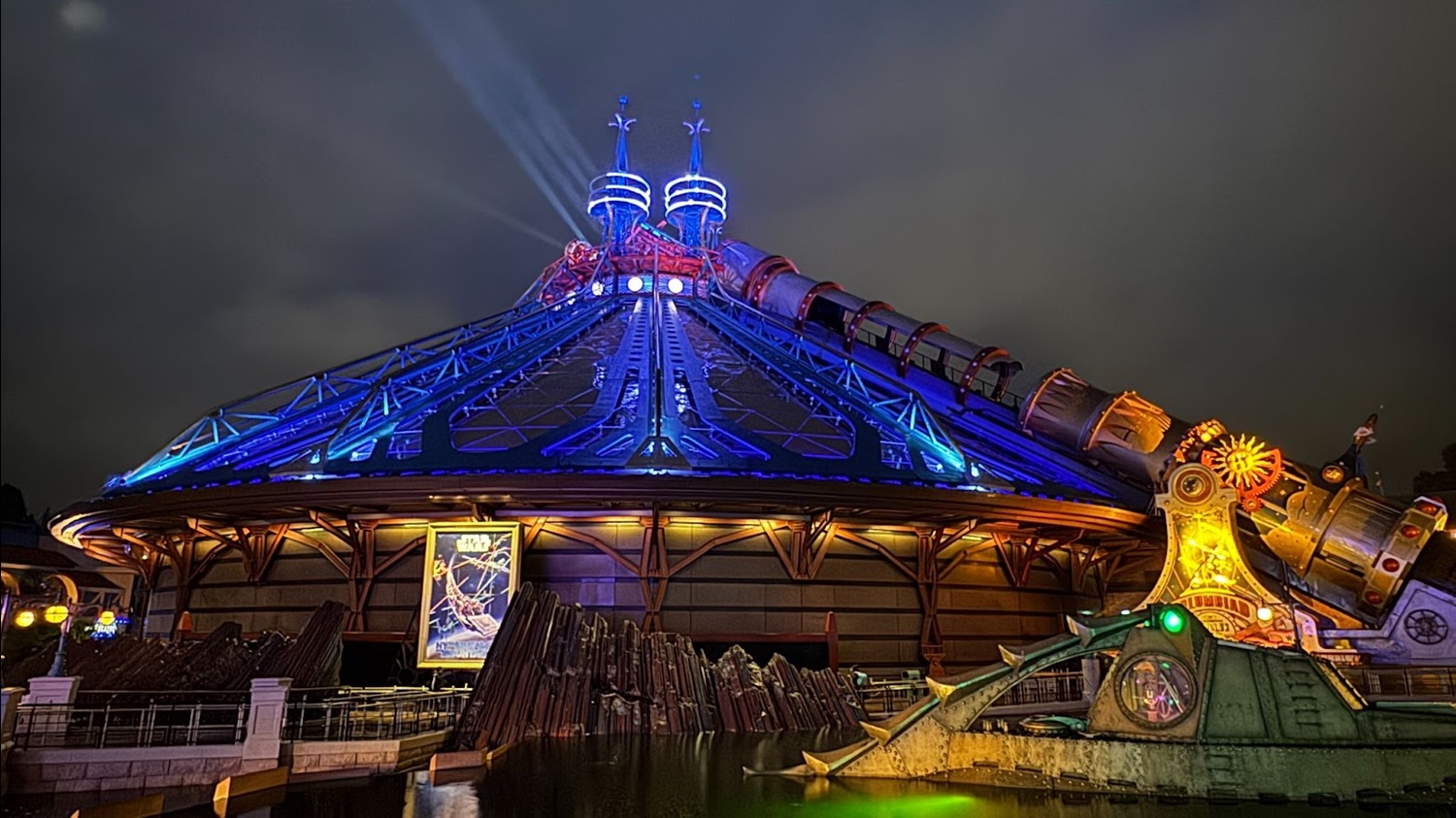 - After debuting last month, we were finally able to check out the excellent new nighttime lighting for Star Wars: Hyperspace Mountain in Discoveryland at Disneyland Paris.
