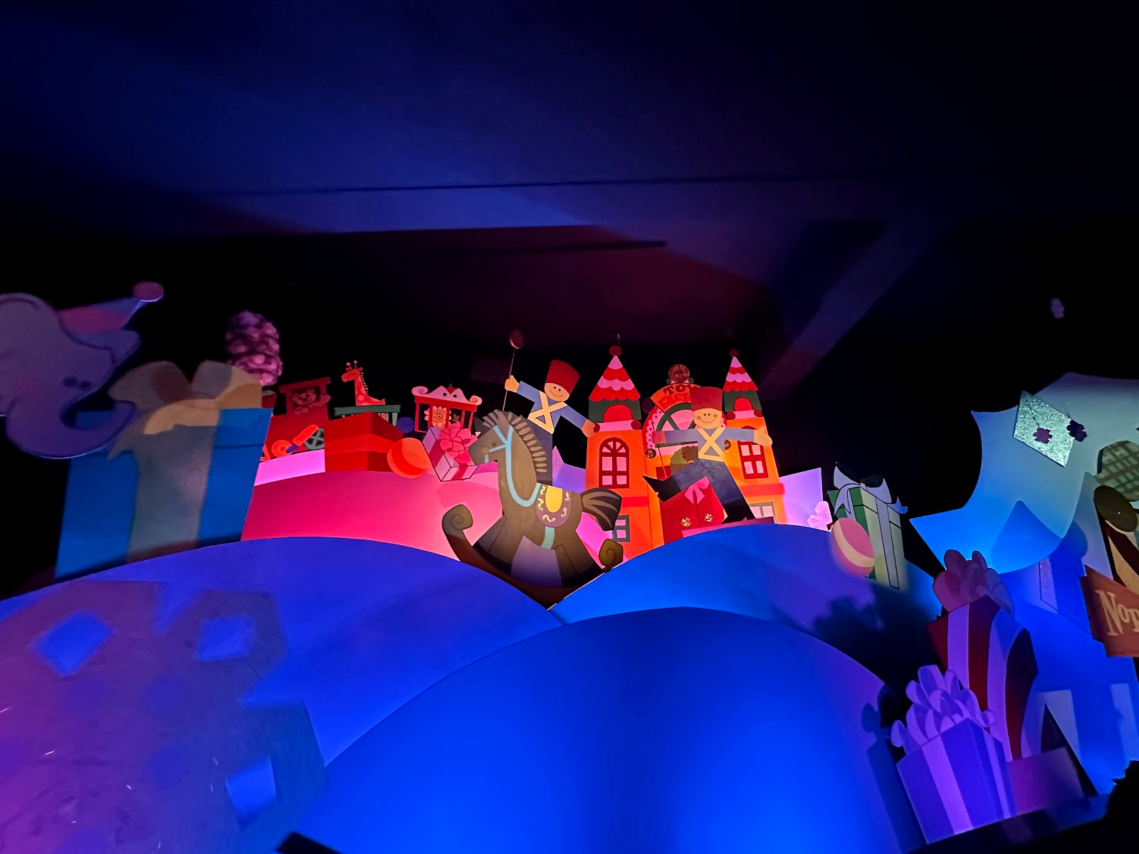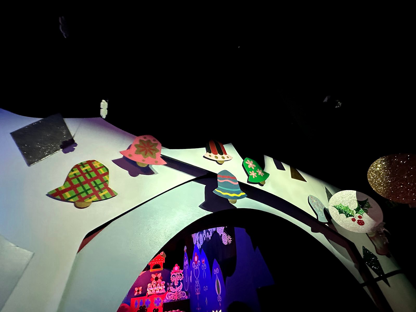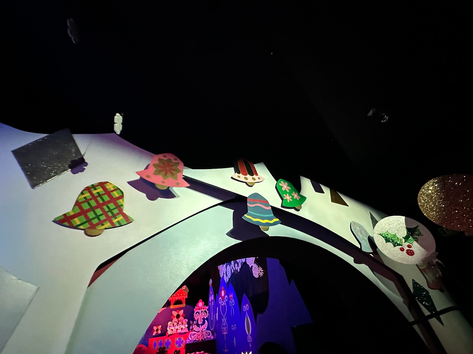 "it's a small world" Holiday is more than just the experience inside the attraction, but also the stunning displays on the facade of the beloved attraction, which is covered in colorful lights and plays host to holiday projection shows. As part of the 70th celebration earlier this year, we saw the debut of the new projection show, Tapestry of Happiness, which will also continue through the holiday season on the "it's a small world" facade.
