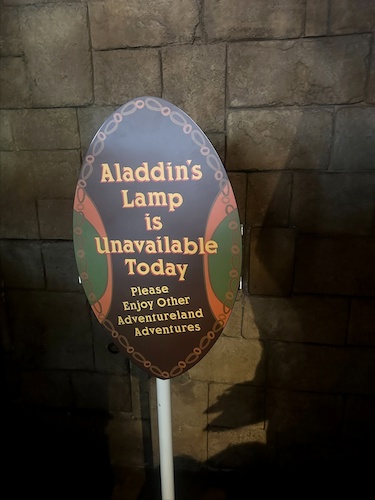 - In Adventureland, Aladdin’s Lamp has been removed in preparation for the new keyhole's arrival. A sign announcing its unavailability was also present.