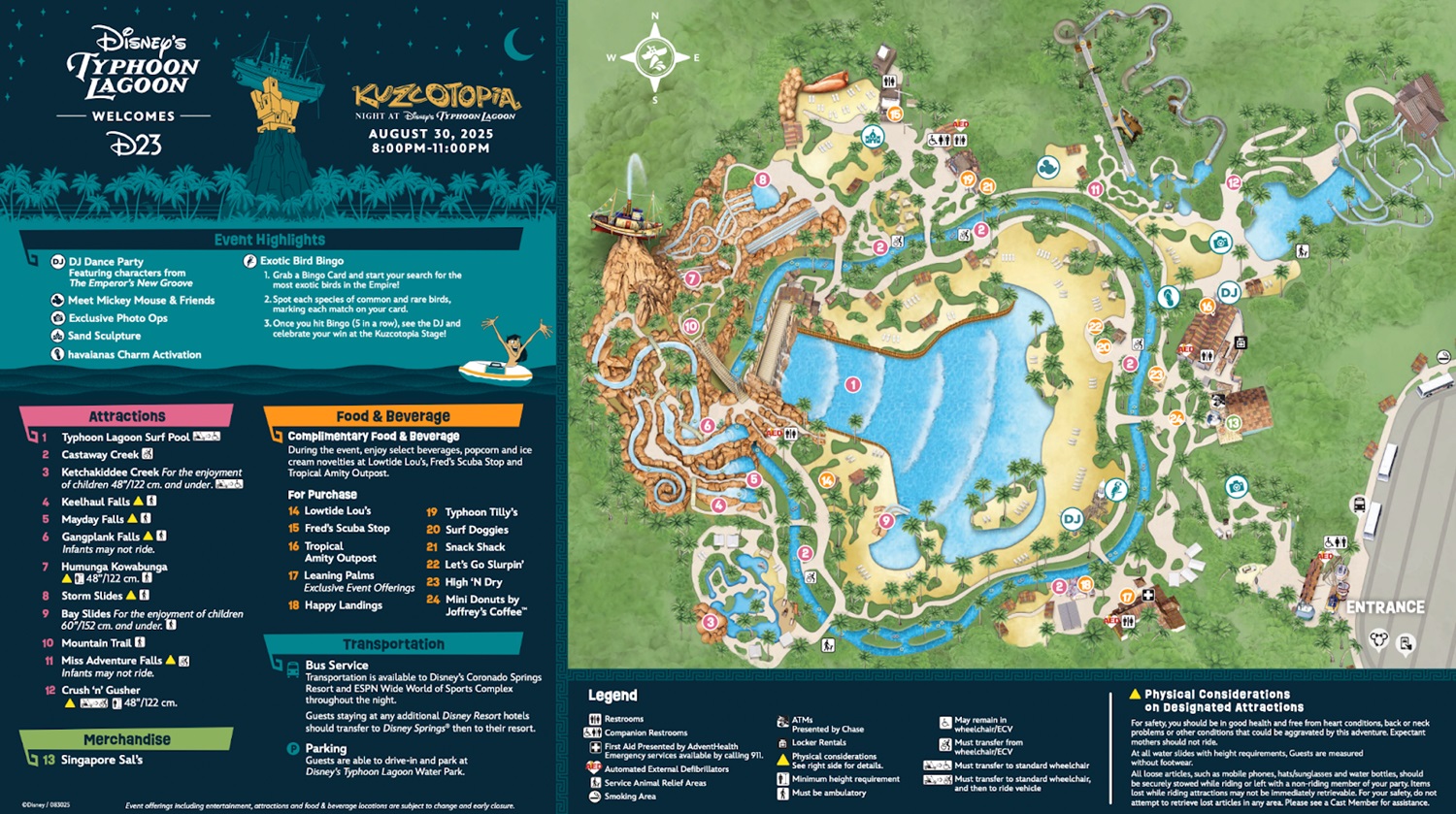 - Parking and Rideshare – Typhoon Lagoon drop-off available at 7:30 p.m.