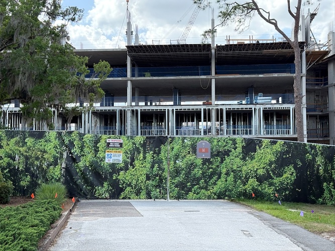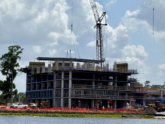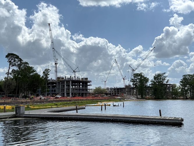 Disney’s Lakeshore Lodge continues to take shape along Bay Lake at the Walt Disney World Resort.
