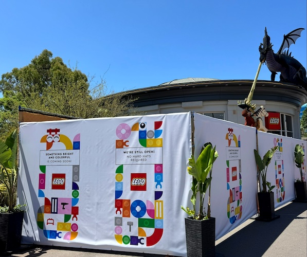 - Construction walls are now up around the facade of the LEGO Store, marking the beginning of the next phase of its complete reimagining.