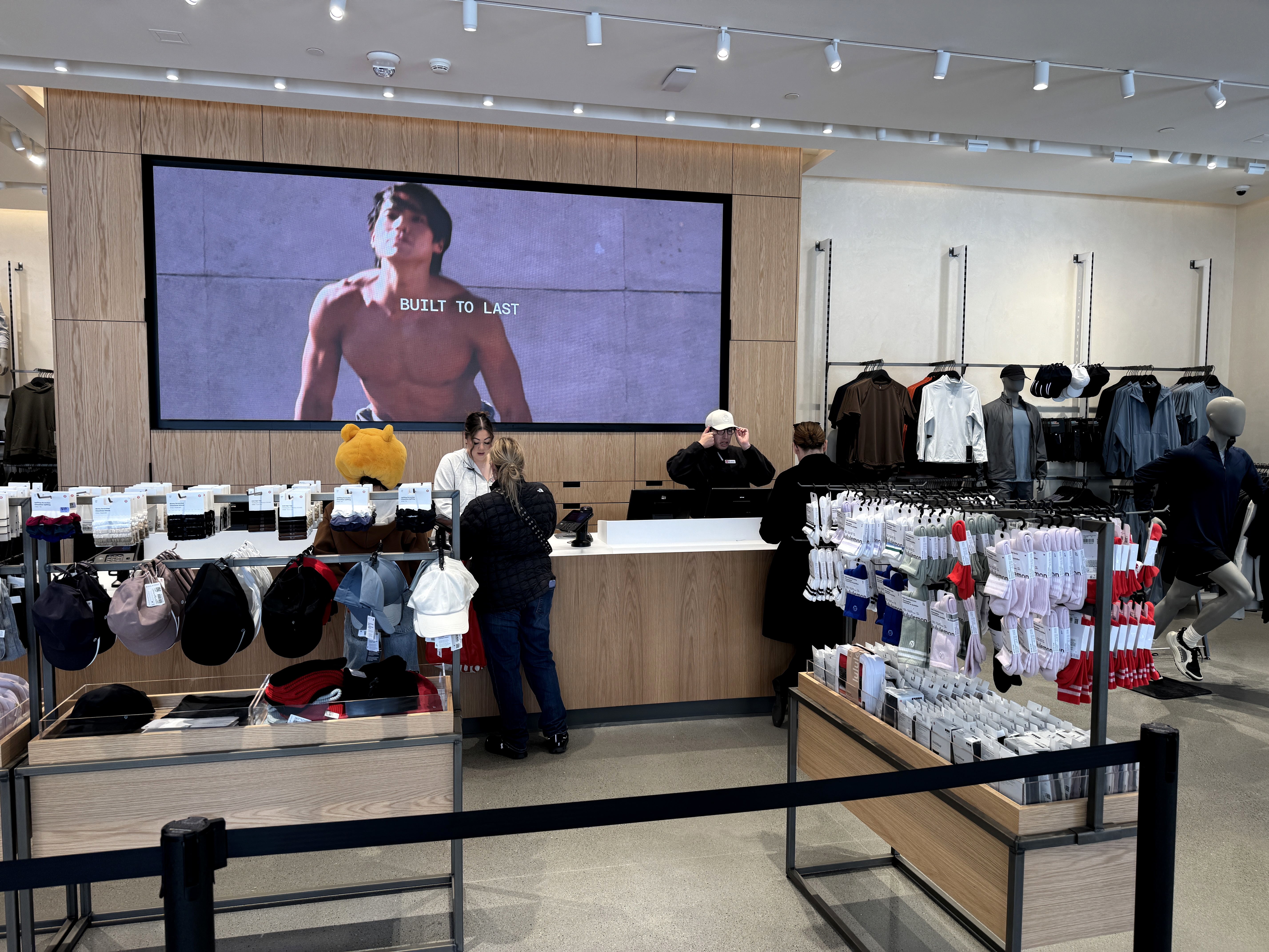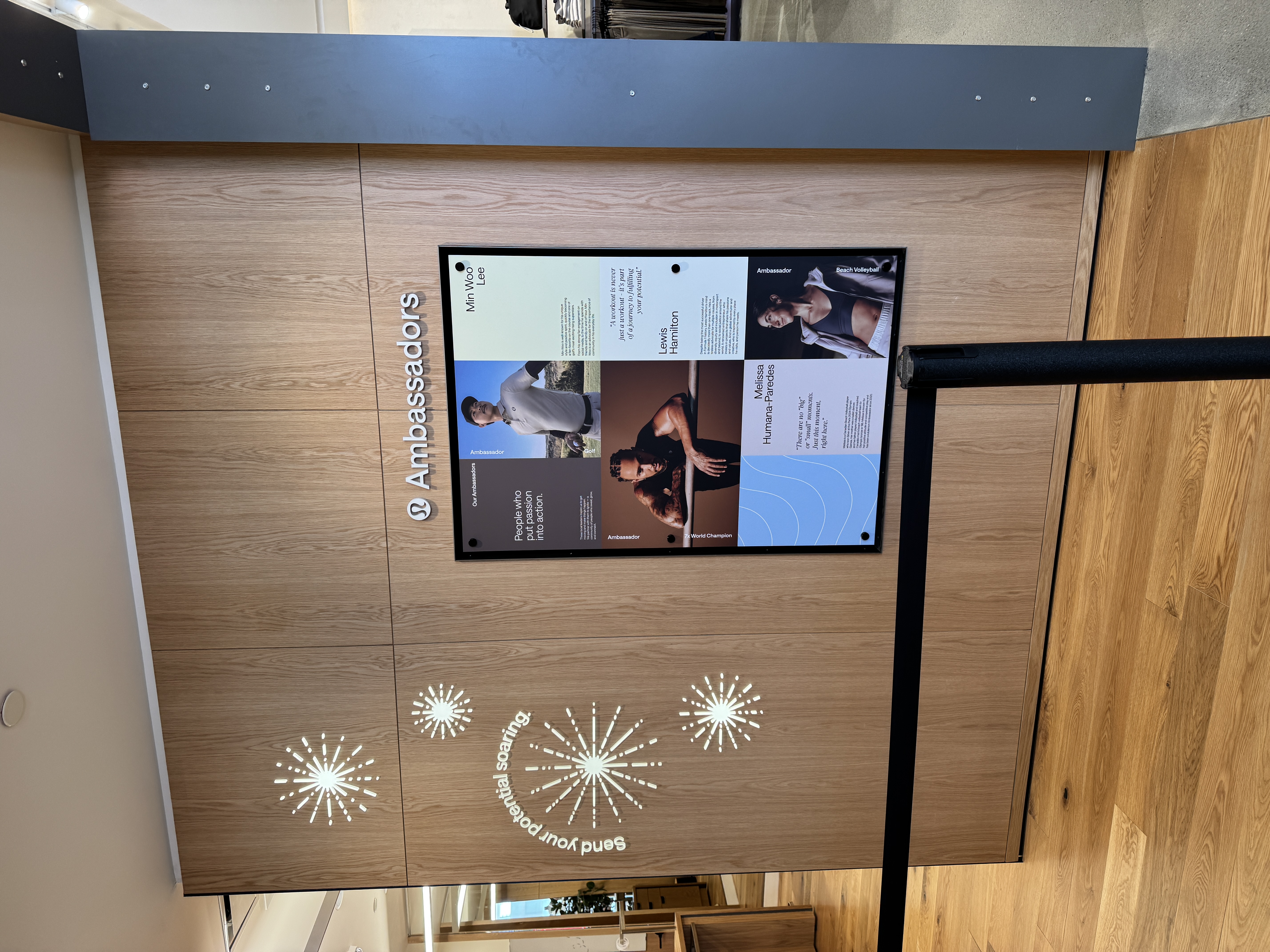 A spotlight on lululemon Ambassadors is found over by the changing rooms.