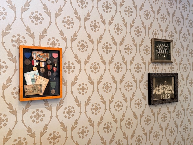 - Matching the theme of the external facade, vintage sports memorabilia decorates the wall behind the registers.