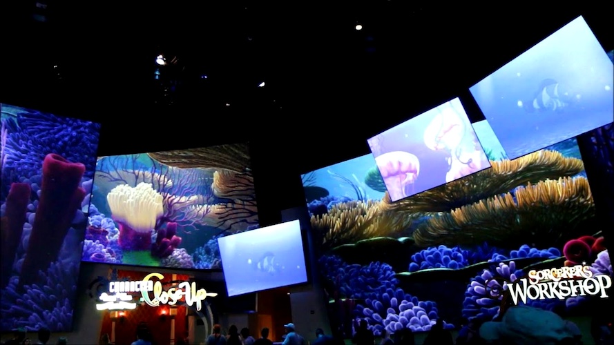 This arena of screens showcasing moments and music from the long legacy of films, to this day, remains one of my (if not my) favorite things at Disney California Adventure. I’ve always had it in my head where it could go in the building as well, considering the raised walkways and animator pits (an area that serves as meet and greet queues now) but it never happened. In my perfect world, this would be brought over in some way, but its modern design doesn’t fit into the new aesthetic. Plus (and let’s be real this will happen with the new Magic of Disney Animation anyway), that lobby would become the hangout and/or sleep zone during blistering heat and intense thunderstorms of the Florida landscape, seen as desirable more for its roof and air conditioning rather than the experiences that lie within.