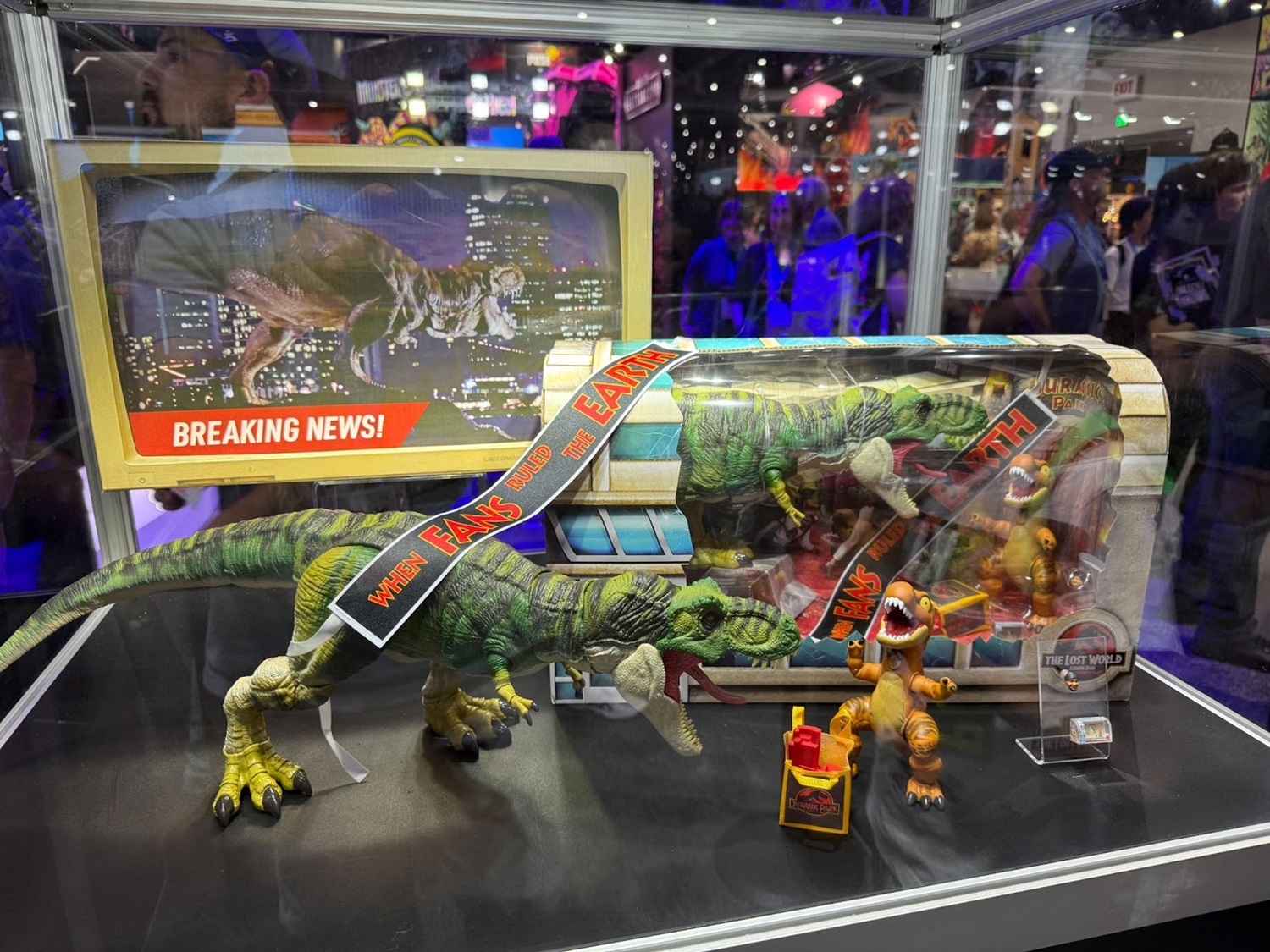 “We wanted to leverage the success of the new movie, but also look back at one of the great moments of the older ones," Karamanos explained. “The male T. rex—Buck—rampaging through the city, passing plush toys and chaos. It's such a fun, nostalgic moment, and perfect for Comic-Con."