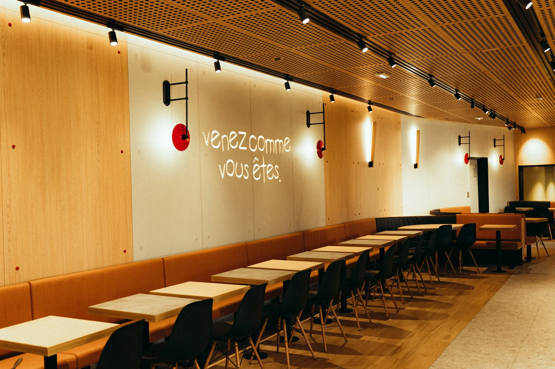 - Guests are welcomed into a spacious, light-filled reception area designed to streamline ordering and reduce wait times. Technology plays a central role in enhancing convenience, including: