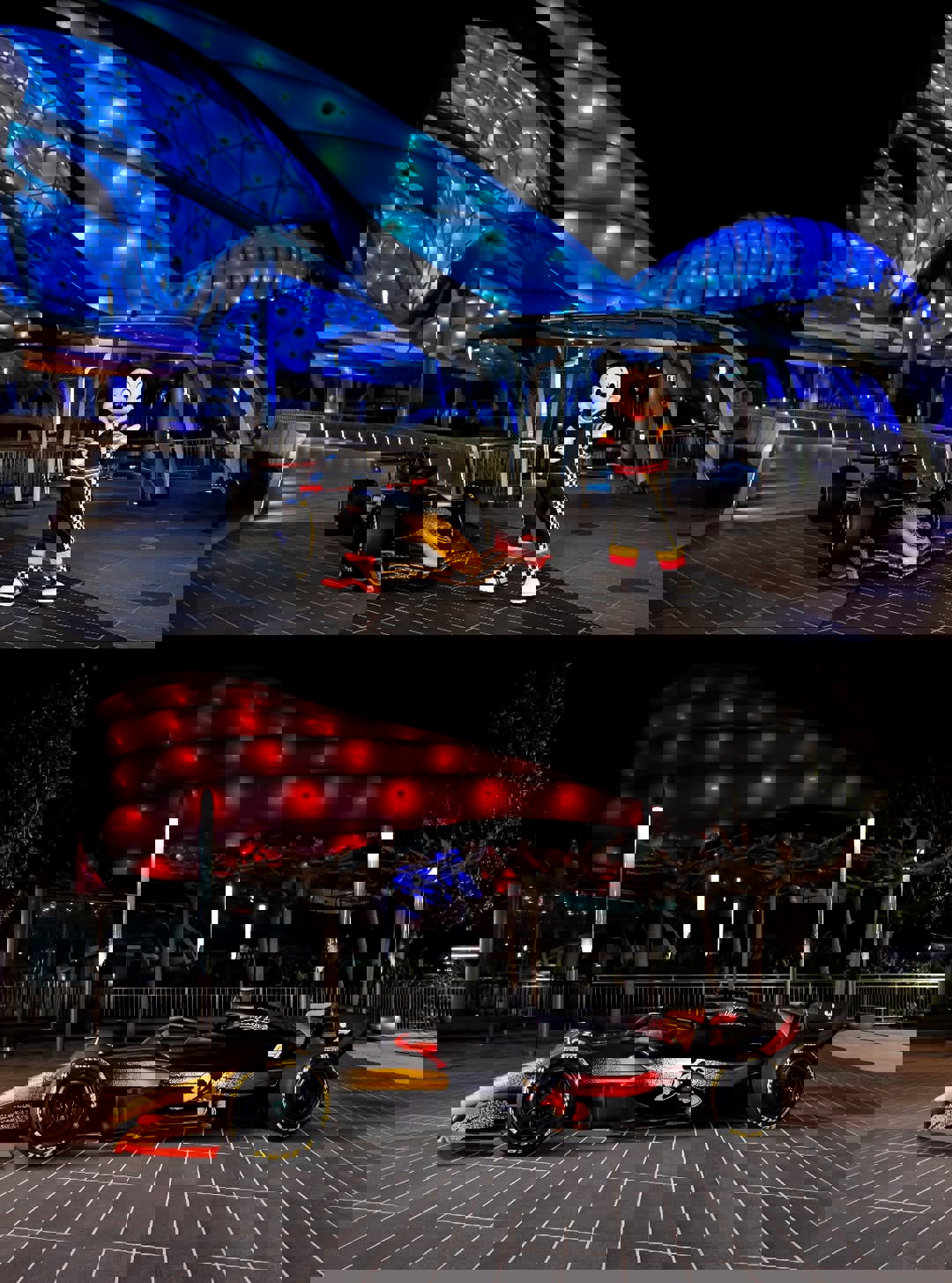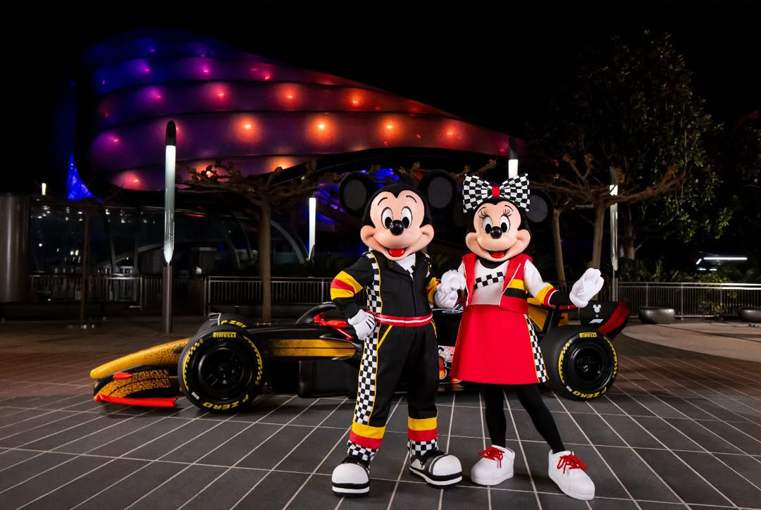 - At the park's Main Entrance portal, guests can spot Mickey and Minnie in new F1-inspired racing looks.