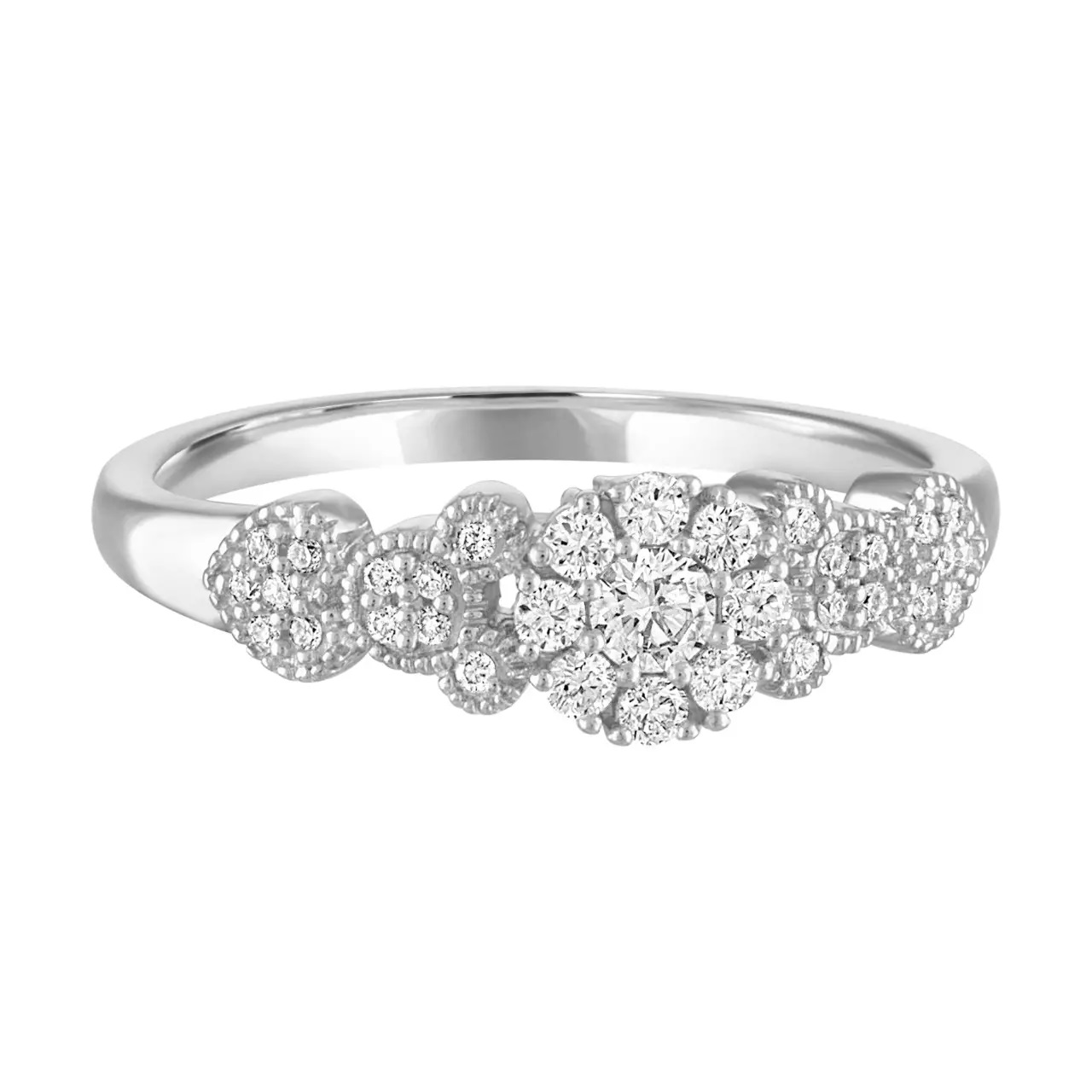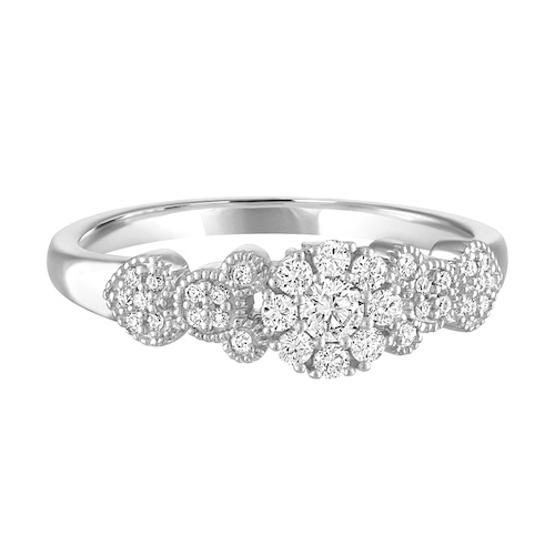 - Expertly crafted from 14k white gold and adorned with handset natural diamonds, this exquisite piece showcases the beloved shapes of Mickey icons, two hearts, and a flower.