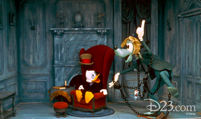 After refusing his nephew’s invitation, Scrooge retires to his home on Christmas Eve, when he gets a ghostly visit from his deceased business partner, Marley, played by Goofy.