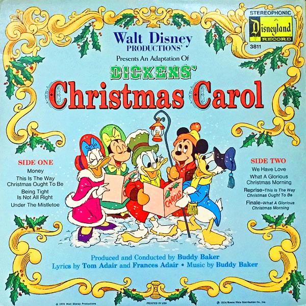 The first scene depicts Bob Cratchit (Mickey Mouse) with Scrooge in his counting house, as they get a visit from Scrooge's nephew Fred, played by Donald Duck.