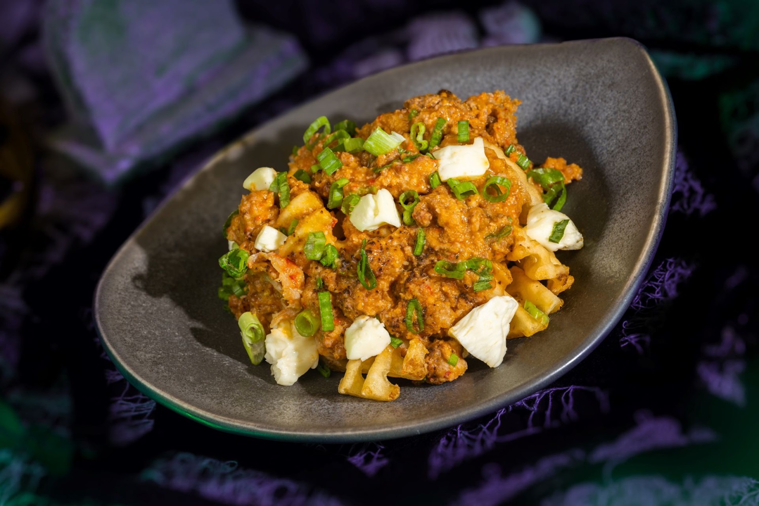 - Cajun Crawfish and Sausage BOOtine: Waffle fries topped with Cajun-inspired crawfish, andouille sausage gravy, and cheese curds (New) (Available during Mickey’s Not-So-Scary Halloween Party only)
