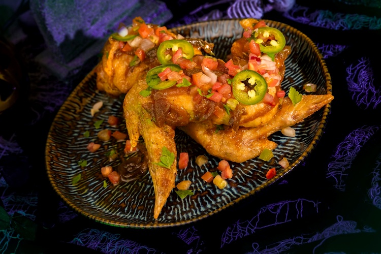 - Buzzard Wings: Whole chicken wings tossed with grilled onions, jalapeños, and lime (New) (Available during Mickey’s Not-So-Scary Halloween Party only)