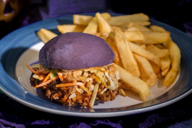 - Pumpkin-spiced Coffee Barbecue Pork Sandwich: Coffee-rubbed pork featuring Joffrey’s Pumpkin Crème Brûlée Coffee Seasonal Blend, cold brew barbecue sauce, and a slaw with pumpkin-spiced aïoli on a purple sweet potato bun (New) (Available during regular park hours and Mickey’s Not-So-Scary Halloween Party)