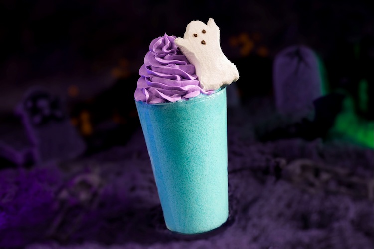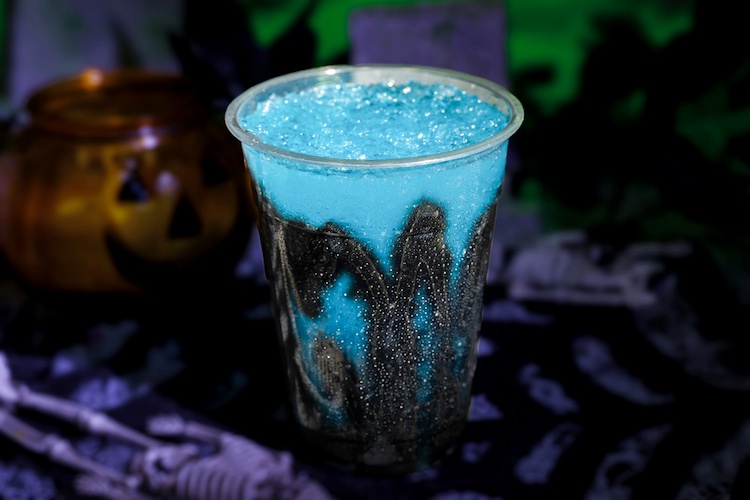 - Scary Ghost Slushy: Blue raspberry slushy with marshmallow foam and a marshmallow ghost (Non-alcoholic) (Available during Mickey’s Not-So-Scary Halloween Party only)