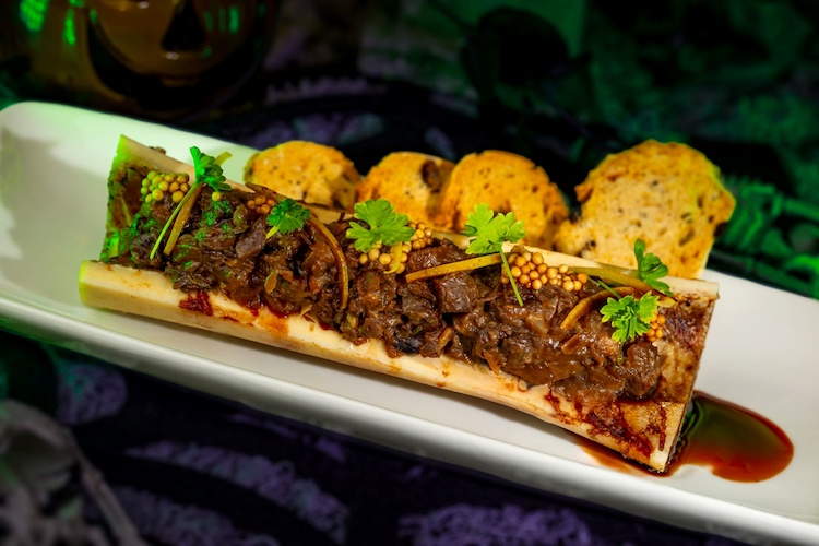 - Roasted Beef Marrow Bone with pinot noir-beef marmalade, toasted baguette, and pickled mustard seeds (Available during Mickey’s Not-So-Scary Halloween Party only)