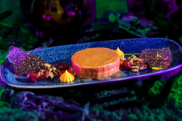 - Pumpkin Crème Caramel with sour cherry jam and pumpkin seed brittle (Available during Mickey’s Not-So-Scary Halloween Party only)
