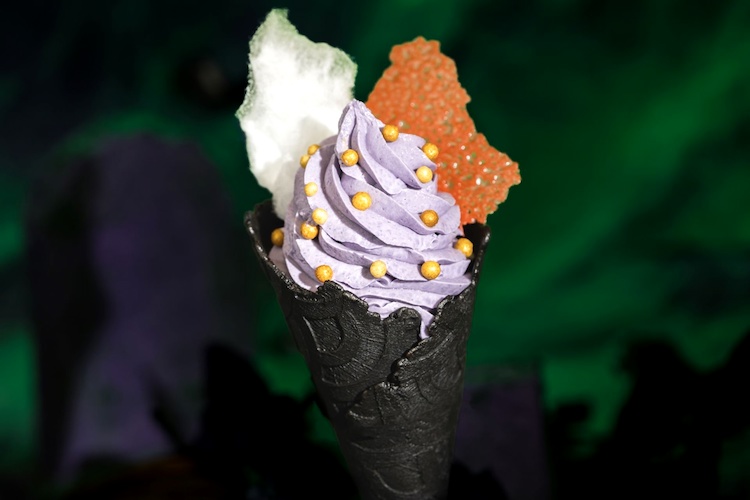 - Ursula Cone: Wild berry soft-serve with candy coral and citrus cotton candy in a black vanilla cone (New) (Available during Mickey’s Not-So-Scary Halloween Party only)