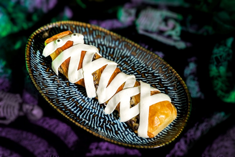 - Mummy Treat: Flaky pastry with chocolate filling topped with white icing stripes and sugar décor (Available during Mickey’s Not-So-Scary Halloween Party only)