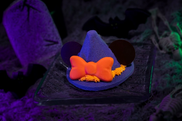 - Minnie Witch Hat: Chocolate cookie topped with peanut butter mousse, milk chocolate ganache, and buttercream (Available during Mickey’s Not-So-Scary Halloween Party only)