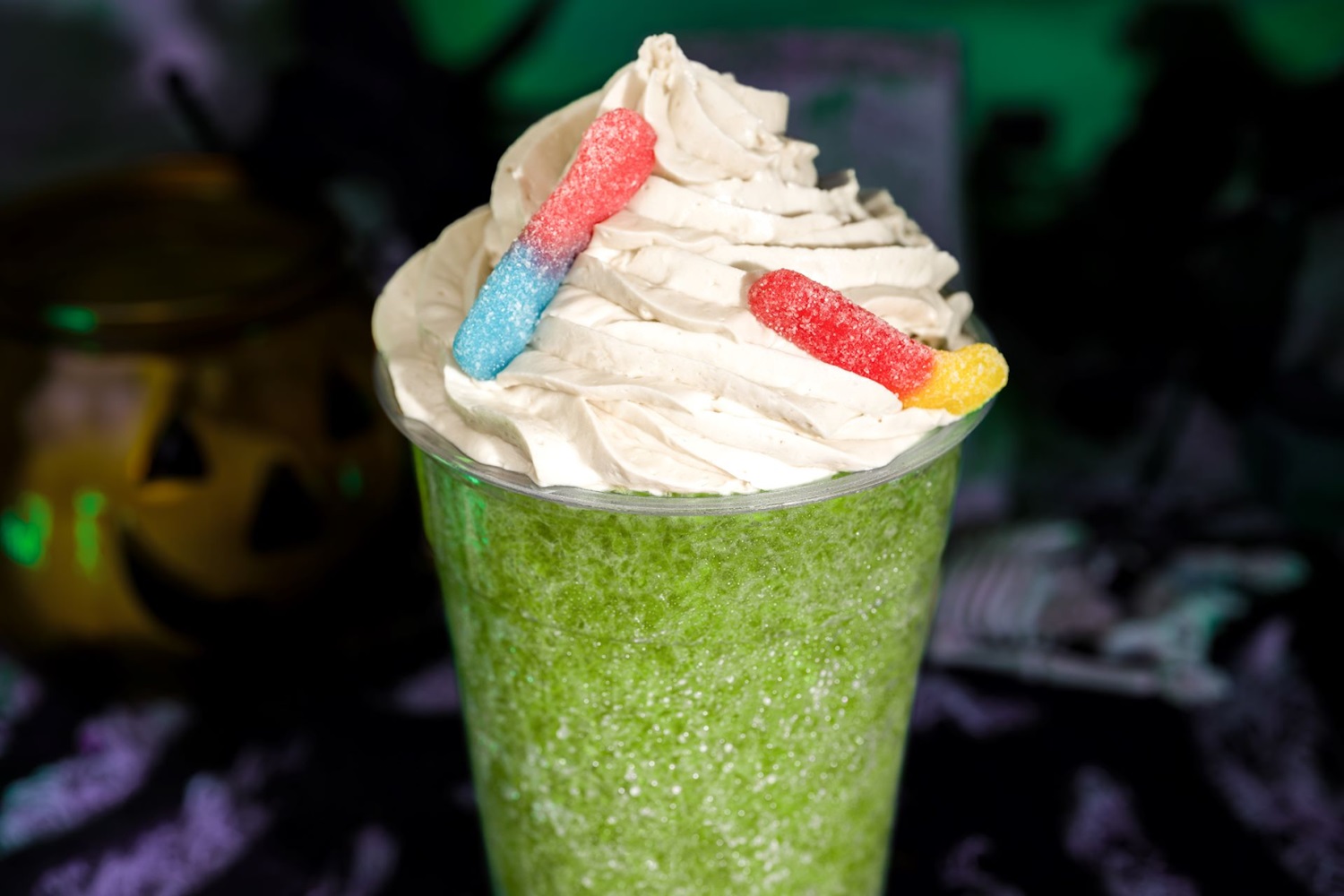 - Not A Poisoned Apple Slushy: Frozen apple cider topped with cinnamon whipped cream and sour gummy candy (Non-alcoholic) (New) (Available during Mickey’s Not-So-Scary Halloween Party only)