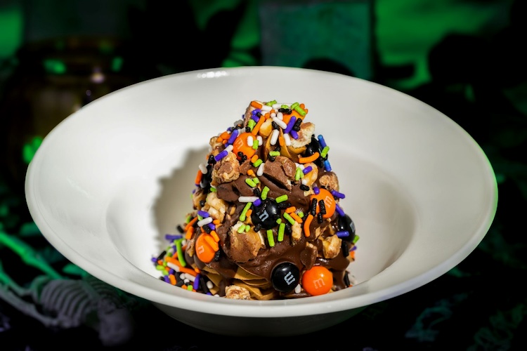 - Candy Bowl Sundae: Salted caramel soft-serve topped with chocolate cone dip, SNICKERS bar pieces, TWIX cookie bar pieces, and M&M’S Milk Chocolate Candies Halloween Blend (New) (Available during Mickey’s Not-So-Scary Halloween Party only)