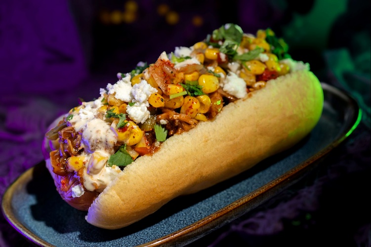 - Chipotle Barbecue Pork and Street Corn Hot Dog: All-beef hot dog with fire-roasted corn, queso fresco, jalapeño ranch, and cilantro (Available during Mickey’s Not-So-Scary Halloween Party only)