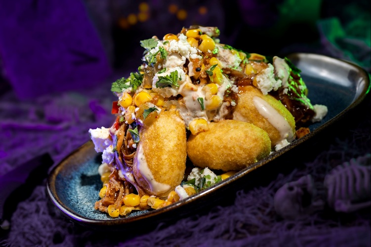 - Chipotle Barbecue Pork and Street Corn Mini Corn Dogs: Mini corn dogs topped with fire-roasted corn, queso fresco, jalapeño ranch, and cilantro (Available during Mickey’s Not-So-Scary Halloween Party only)