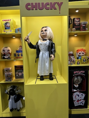 Merchandise from Halloween II, Terrifier, M3GAN, Chucky, Universal Classic Monsters, HamiKuma, and Universal Horror Unleashed were the main subjects of the merchandise displays.